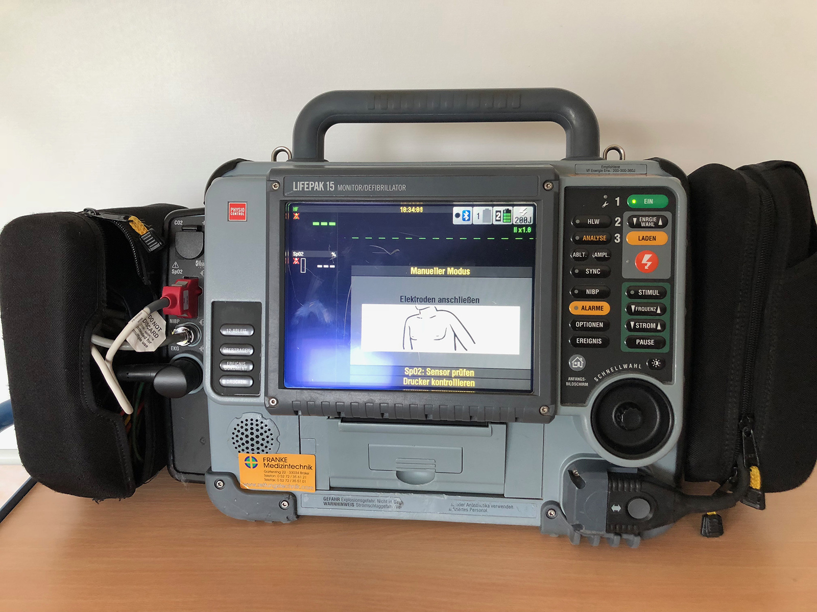 Ausstattung: AED, Pacer, Defi, SpO2, CO2, NiBP, 12-Kanal-EKG, IBP